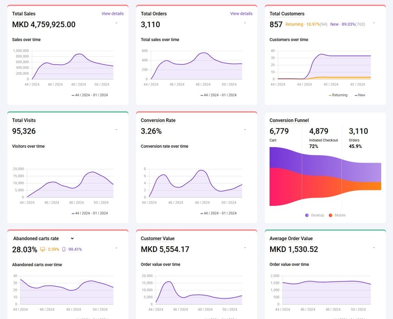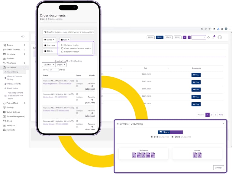 Нашиот софтвер овозможува складирање на податоци поврзани со сите производи, нарачки, вработени, курири и другo, што го олеснува генерирањето на потребните документи и аналитики.
